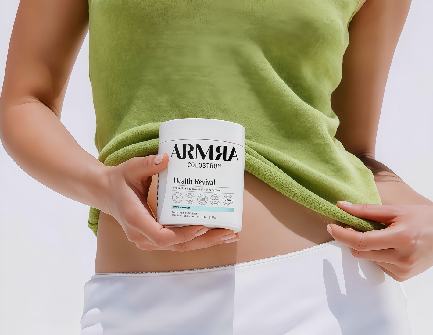 ARMRA Colostrumâ„¢ is grass-fed, non-GMO, glyphosate-free, sustainably sourced from hormone-free US family farms with strict animal welfare standards. Following calf-first sourcing, we upcycle surplus colostrum after calves get full nutrition, turning industrial waste into premium nutrients with zero waste.