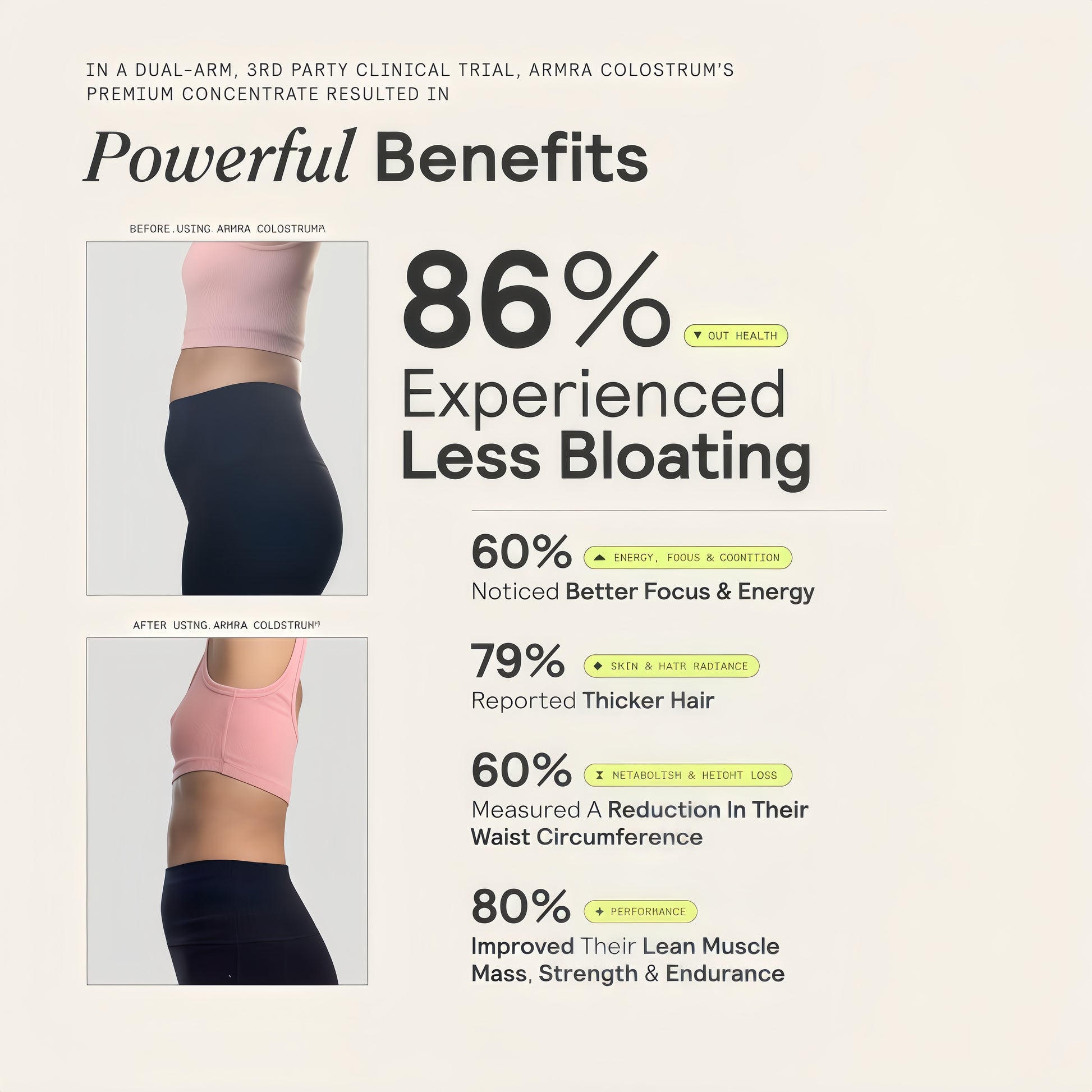 Results build with consistency. Some people notice changes quickly, while others see and feel benefits over 4+ weeks of daily ARMRA Colostrumâ„¢ use.â€