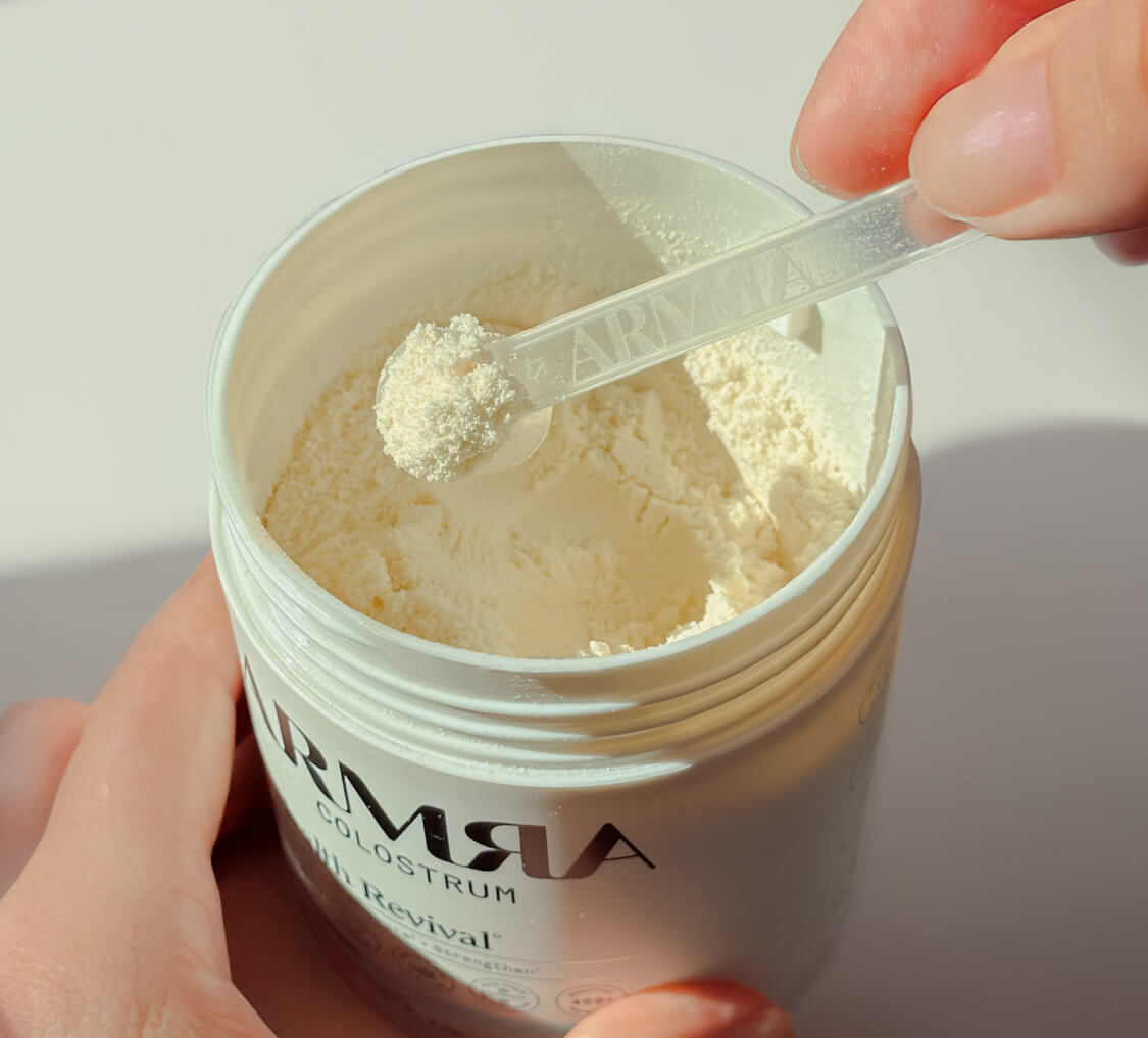 Enjoy ARMRA Colostrum Unflavored straight from the scoop; a clean, malty taste that keeps your routine effortless.